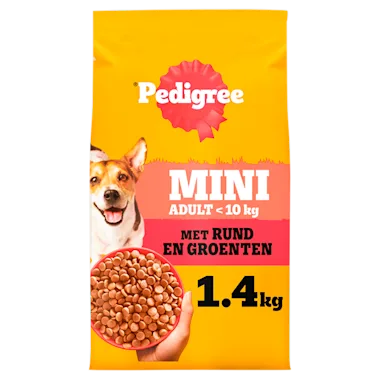 De PEDIGREE® Adult Mini hondenbrokken bevatten natuurlijke ingrediënten. Dit droge hondenvoer is speciaal afgestemd op de behoeften van kleine volwassen honden. Een gezonde brok met een uitgebalanceerde samenstelling zal ervoor zorgen dat je kleine hond een gezond en gelukkig leven kan leiden. PEDIGREE® Adult Mini Rund en Groenten voorziet je hond in een aantal belangrijke basisbehoeftes