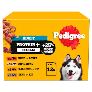1 maaltijdzakje kan worden vervangen door ca. 20 g PEDIGREE® droog diervoeder. Voedingsadvies: Houd rekening met de calorieën afkomstig van lekkernijen. Voedingshoeveelheden zijn uitsluitend bedoeld als richtlijnen. Pas de hoeveelheid voedsel aan aan de leeftijd, de grootte en het activiteitsniveau van je hond. Voor meer gedetailleerde informatie, bezoek onze website. Zorg dat er altijd vers drinkwater beschikbaar is. Opdienen op kamertemperatuur, De behoeften van uw huisdier wat betreft voeding zullen verschillen overeenkomstig leeftijd, gewicht, geslacht, ras en activiteit. Aangezien het belangrijk is dat uw huisdier de juiste hoeveelheid voeding krijgt, raadpleeg het etiket/verpakking voor het complete, gedetailleerde voedingsadvies.