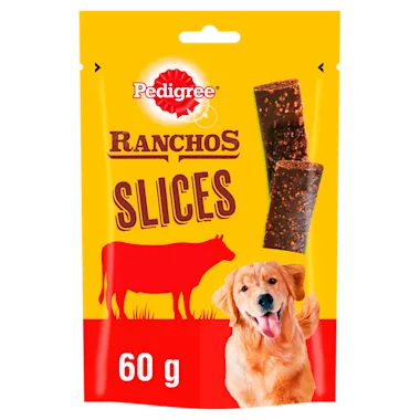 PEDIGREE® RANCHOS slices zijn heerlijke hondensnacks gemaakt van 100% natuurlijk rundvlees waar honden dol op zijn. Ideaal om je hond mee te verwennen of belonen tijdens de training. Geschikt voor honden uit alle gewichtsklassen.