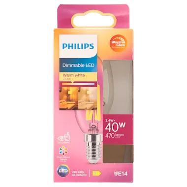 Met deze Philips WarmGlow LED kaarslamp dim je jouw dagelijkse verlichting tot de aangename tonen van gloeilampen, net zo sfeervol als vroeger. Hoe meer je dimt, hoe warmer het licht. Hierin onderscheiden deze LED's zich van andere dimbare LED-lampen, die alleen minder fel schijnen wanneer ze worden gedimd. WarmGlow lampen tonen de ware kleuren van jouw interieur, zoals bij natuurlijke verlichting. Of je nu 's avonds wilt ontspannen of fris aan de dag wilt beginnen, Philips WarmGlow LED's bieden het licht dat je nodig hebt. Met EyeComfort, voor licht dat aangenaam is voor jouw ogen. Deze lamp heeft een E14-fitting en is vaak geschikt voor tafellampen of lusters.