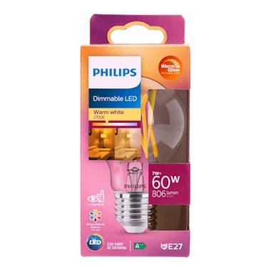 Met deze Philips WarmGlow standaard LED-lamp dim je jouw dagelijkse verlichting tot de aangename tonen van gloeilampen, net zo sfeervol als vroeger. Hoe meer je dimt, hoe warmer het licht. Hierin onderscheiden deze LED's zich van andere dimbare LED-lampen, die alleen minder fel schijnen wanneer ze worden gedimd. WarmGlow lampen tonen de ware kleuren van jouw interieur, zoals bij natuurlijke verlichting. Of je nu 's avonds wilt ontspannen of fris aan de dag wilt beginnen, Philips WarmGlow LED's bieden het licht dat je nodig hebt. Met EyeComfort, voor licht dat aangenaam is voor jouw ogen. Deze lamp heeft een E27-fitting, en past dus in de meeste lampen met grote fitting.
