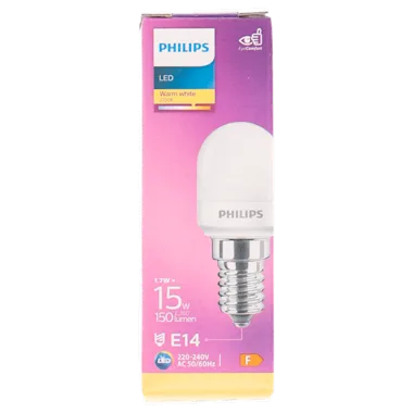 Is de lamp van jouw koelkast kapot? Vervang dan de oude lamp met een nieuwe energiezuinige Philips T25 LED-lamp, met warmwit licht. Deze lamp verbruikt circa 80% minder energie dan traditionele lampen dankzij de nieuwste energiezuinige LED-technologie en ze gaan tien keer langer mee. Met EyeComfort, voor licht dat aangenaam is voor jouw ogen. Deze Philips koelkastlampen kunnen worden gebruikt in koelkasten, vriezers en op vergelijkbare plaatsen waar de temperatuur laag is.