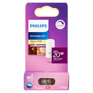 Vervang uw oude capsule met een nieuwe dimbare energiezuinige Philips LED-capsule. Deze capsule verbruikt circa 80% minder energie dan traditionele lampen dankzij de nieuwste energiezuinige LED-technologie. Bovendien gaan ze tien keer langer mee. Deze lamp heeft een GU4-fitting.