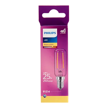 Is de lamp van jouw koelkast kapot? Vervang dan de oude lamp met een nieuwe energiezuinige Philips T25 LED-lamp, met warmwit licht. Deze lamp verbruikt circa 80% minder energie dan traditionele lampen dankzij de nieuwste energiezuinige LED-technologie en ze gaan tien keer langer mee. Met EyeComfort, voor licht dat aangenaam is voor jouw ogen. Deze Philips koelkastlampen kunnen worden gebruikt in koelkasten, vriezers en op vergelijkbare plaatsen waar de temperatuur laag is.