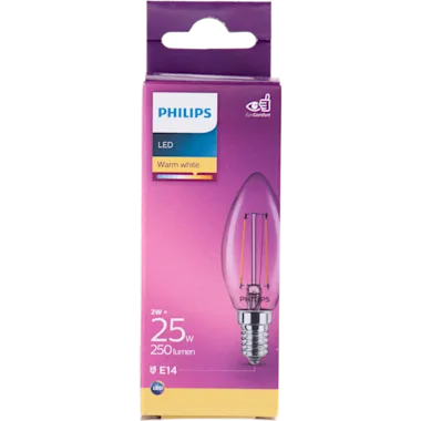Vervang je oude kaarslamp met een nieuwe energiezuinige Philips LED-lamp, met warmwit licht. Deze lamp verbruikt circa 80% minder energie dan traditionele lampen dankzij de nieuwste energiezuinige LED-technologie en ze gaan tien keer langer mee. Met EyeComfort, voor licht dat aangenaam is voor jouw ogen. Deze lamp heeft een E14-fitting en is vaak geschikt voor tafellampen of lusters.