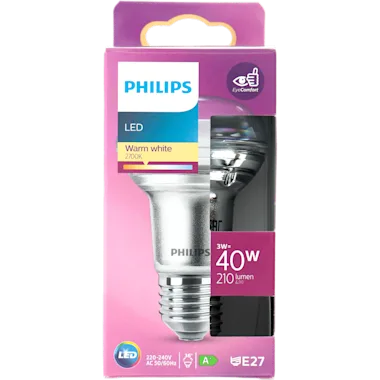Vervang uw oude reflector met een nieuwe energiezuinige Philips LED-reflector. Deze spot zorgt voor een gerichte lichtbundel en verbruikt circa 80% minder energie dan traditionele lampen dankzij de nieuwste energiezuinige LED-technologie. Bovendien gaan ze tien keer langer mee. Met EyeComfort, voor licht dat aangenaam is voor uw ogen. Deze lamp heeft een grote E27-fitting.