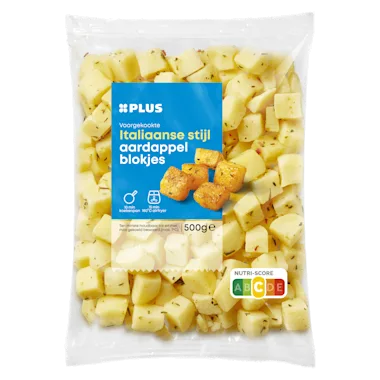 Airfryer: bak circa 15 minuten bij 180°C tot de aardappelblokjes goudgeel zijn. Voeg indien gewenst wat olie toe. Halverwege omschudden.