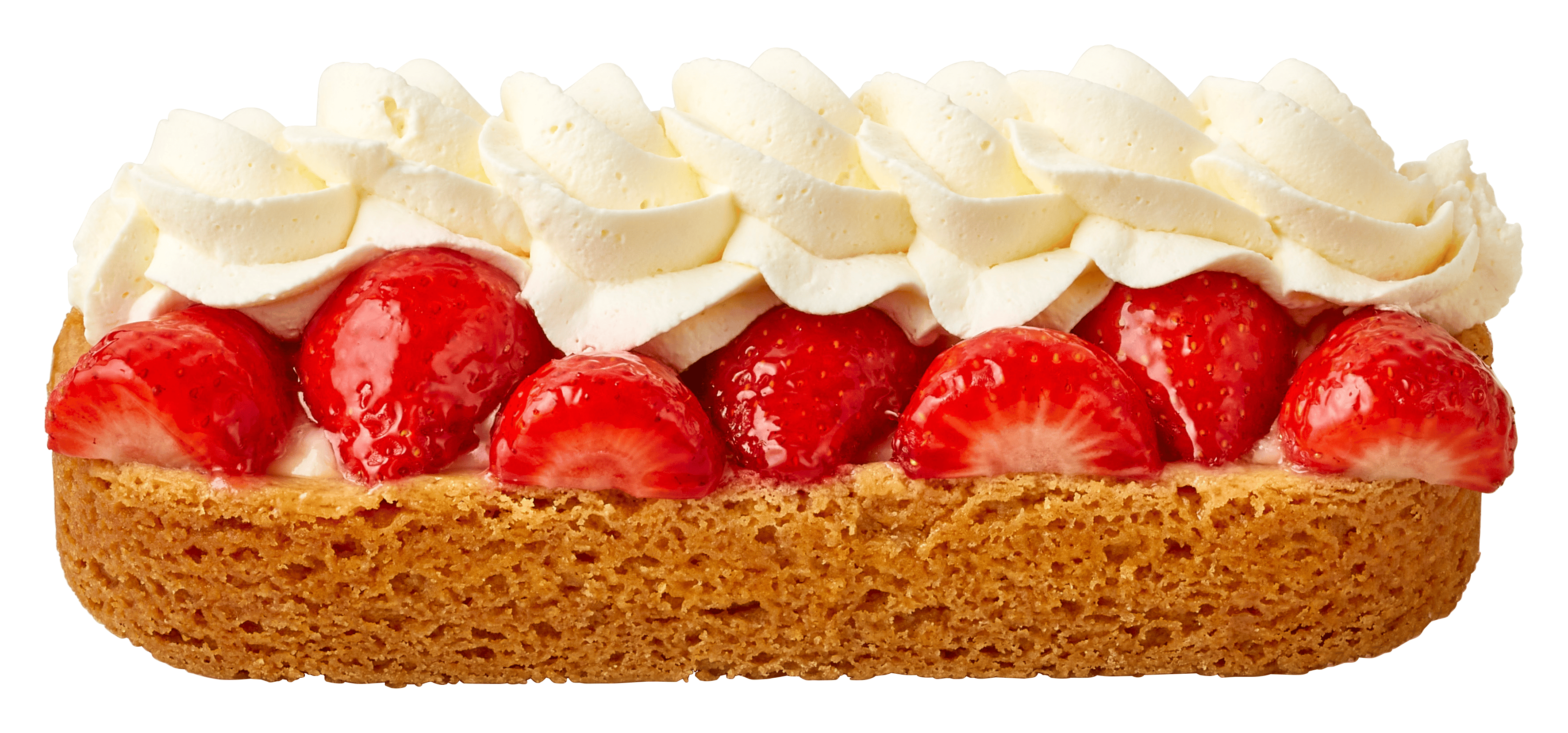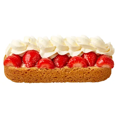 Roomboteramandelslof gevuld met 22% gele room, aardbeien en 9% slagroom