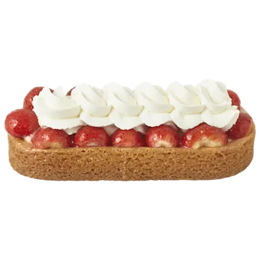 Roomboteramandelslof gevuld met 22% gele room, aardbeien en 9% slagroom