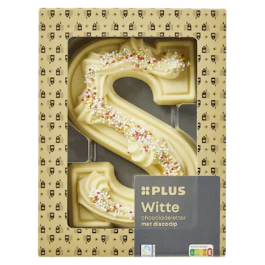 Witte chocoladeletter met 11% witte chocoladeswirl en 2,4% gekleurd musketzaad
