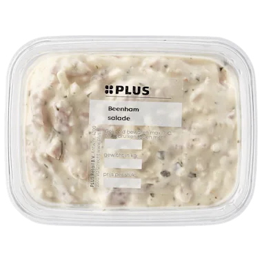 Ingrediënten :34% gerookte beenham (72% varkensvlees*, water, aardappelzetmeel, zout, rook, voedingszuur: E325, stabilisator: E451, antioxidant: E301, conserveermiddel: E250), raapzaadolie, water, SELDERIJ, suiker, VRIJE-UITLOOPKIPPENEI-EIGEEL, azijn, maïszetmeel, ui, zout, gemodificeerd maïszetmeel, voedingszuur: E330, conserveermiddel: E202/E211, peterselie, specerijen, MOSTERDZAAD, verdikkingsmiddel: E415, antioxidant: E300.