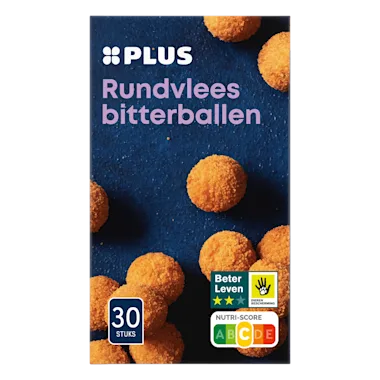 ** Beter leven keurmerk. Het rundvlees in deze PLUS bitterballen is op diervriendelijke wijze geproduceerd en daarom heeft de Dierenbescherming het Beter Leven keurmerk 2 sterren toegekend aan dit product.