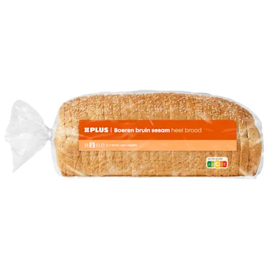 VOLKORENTARWEMEEL, TARWEBLOEM, water, 2,4% SESAMZAAD, bakkersgist, TARWEGLUTEN, bakkerszout, emulgator: E482/E471, SOJABLOEM, moutmeel (GERST, TARWE), enzym (TARWE), meelverbeteraar: E300, gebrande suiker.