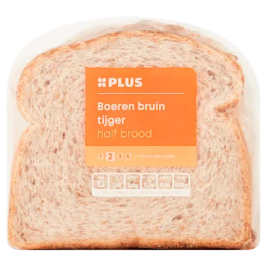 Ingrediënten :VOLKORENTARWEMEEL, TARWEBLOEM, water, tijgerdecoratie (water, rijstebloem, TARWEBLOEM, dextrose, zout, gist), bakkersgist, TARWEGLUTEN, bakkerszout, emulgator: E482/E471, SOJABLOEM, moutmeel (GERST, TARWE), enzym (TARWE), meelverbeteraar: E300, gebrande suiker.