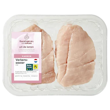 ingrediënten :100% varkensvlees*. * = beter leven keurmerk 1 ster