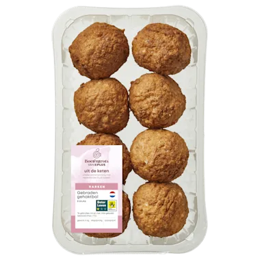 Ingrediënten :82% Varkensvlees*, 7% rundvlees**, paneermeel (TARWEBLOEM, ROGGE, gist, zout), raapzaadolie, water, TARWEZETMEEL, zeezout, uipoeder, plantaardig eiwithydrolysaat (raapzaad, mais), zonnebloemolie, specerijen, aroma, suiker, gistextract, gekaramelliseerde suiker, stabilisator: E450, conserveermiddel: E261, voedingszuur: citroenzuur. *= Beter Leven keurmerk 1 ster. **= Beter Leven keurmerk 2 sterren.