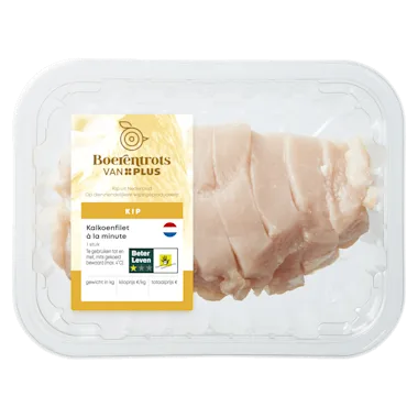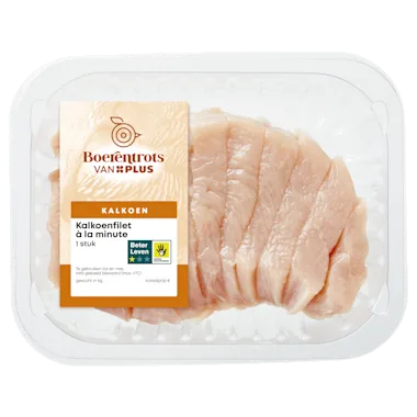 Verhit boter of olie in een pan en bak de kalkoenfilet à la minute rondom bruin en in ca. 4 minuten gaar.