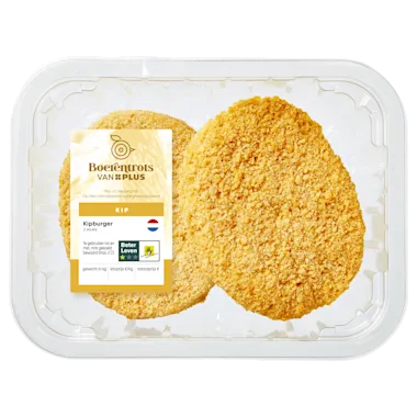 Verhit boter of olie in de pan en bak de kipburger in ca. 5 minuten rondom bruin. Friteuse (180 C): frituur de kipburger ca. 4 minuten.
