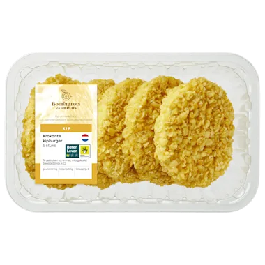 Ingrediënten :53% Kippenvlees*, cornflakes (mais), water, zonnebloemolie, TARWEBLOEM, TARWEZETMEEL, zonnebloempitvetpoeder, zuurteregelaar: E326, conserveermiddel: E262/E267, voedingszuur: citroenzuur, zout, maiszetmeel, TARWEGLUTEN, specerijen, weipermeaat (MELK), natuurlijk aroma, antioxidant: extracten van rozemarijn, dextrose, glucosestroop, gist, gemodificeerd aardappelzetmeel, specerijextracten (zwarte peper, SELDERIJ, kurkuma).