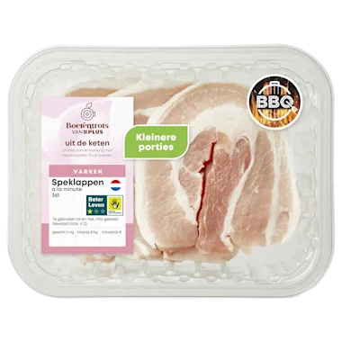 Bereidingswijze: Verwijder de verpakking. Koekenpan: Bak de speklapjes in circa 3-5 minuten bruin en gaar. Regelmatig keren.