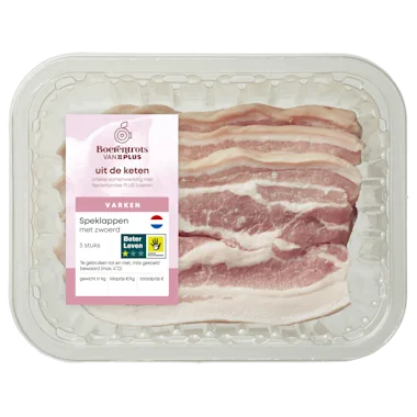 Bereidingswijze: Verwijder de verpakking. Koekenpan: Verhit boter en/of (olijf)olie en bak de speklapjes in circa 15-20 minuten bruin en gaar. Regelmatig keren.