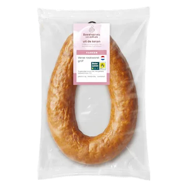 Pan: Verwijder de verpakking en verwarm de rookworst gedurende 15 minuten in heet, niet-kokend water.