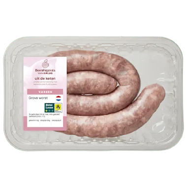 Verwijder de verpakking. Koekenpan: Verhit boter en/of (olijf)olie en bak de worst in circa 15-20 minuten bruin en gaar. Regelmatig keren.
