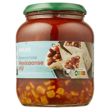 Ingrediënten :water, 32% kidneybonen, 24% groenten (ui, rode paprika, groene paprika, maïs), 6% tomatenconcentraat, suiker, gemodificeerd maïszetmeel, groentebouillonpoeder (zout, glucosestroop, specerijen, dextrose, ui, wortel, prei, zonnebloemolie, natuurlijk aroma), specerijen, zout, aroma, gerookt paprikapoeder, paprikaconcentraat, verstevigingsmiddel: calciumchloride.