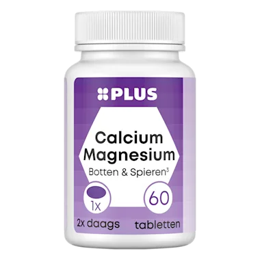 Plus Calcium Magnesium met zink en vitamine D tabletten bevatten de essentiële mineralen calcium, magnesium en zink in combinatie met vitamine D welke bijdragen aan de instandhouding van sterkte botten. Magnesium is ook goed voor de werking van de spieren. Vitamine D verhoogt de opname van kalk in de botten en draagt bij aan een sterk gebit.
