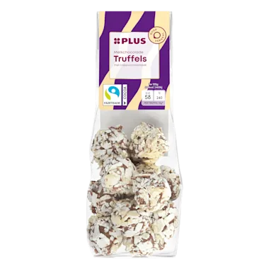 Melkchocolade truffels met witte chocolade schilfers en cappuccinosmaak