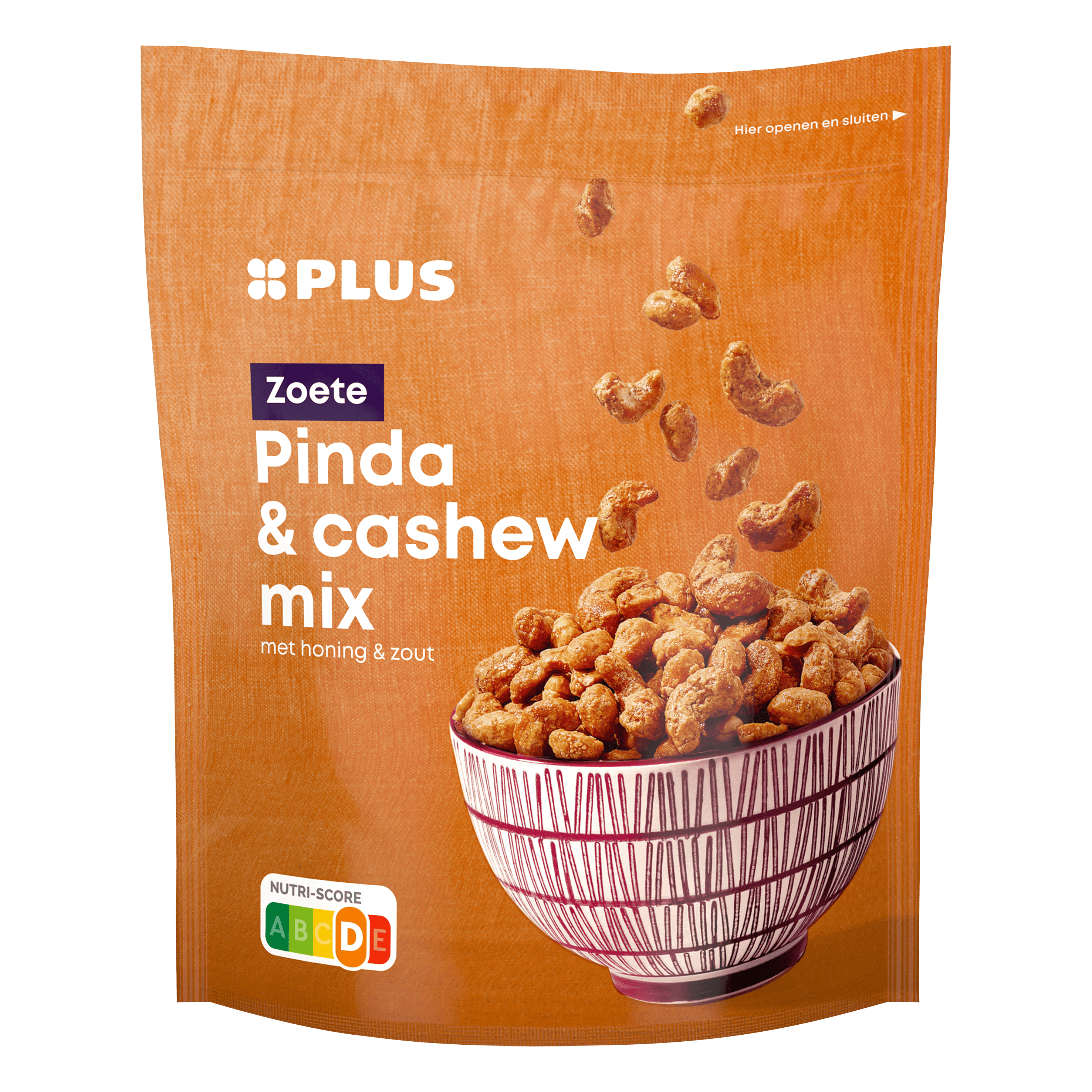 Waarschuwing: Kleine kinderen kunnen zich in pinda's en noten verslikken.