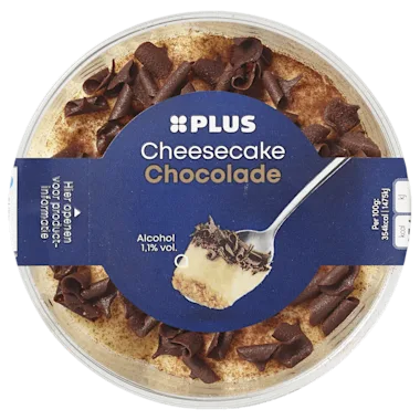 Cheesecake dessert gedecoreerd met pure chocolade krullen
