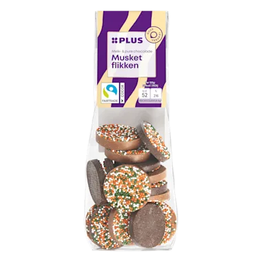 Chocoladeflikken in melkchocolade en pure chocolade met 11% oranje,- groen- en wit musketzaad