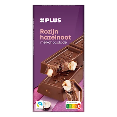 Melkchocolade met hele hazelnoten en rozijnen