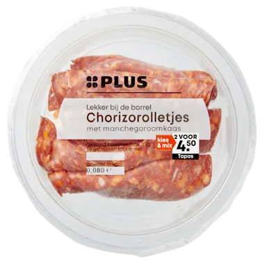 Ingrediënten :51% roomkaas met manchego (75% verse roomkaas (gepasteuriseerde MELK, zout, zuursel, microbieel stremsel), 14% manchego kaas (SCHAPENMELK, zout, dierlijk stremsel, zuursel), gemodificeerd aardappelzetmeel, plantaardige oliën (zonnebloem, raapzaad, in wisselende verhouding), voedingszuur: E330, zout, conserveermiddel: E202), 49% Chorizo Pamplona (58% varkensvlees, 32% varkensvet, zout, maltodextrine, paprika, magere MELKPOEDER, dextrose, MELKEIWITTEN, knoflook, stabilisator: E450/E452, cayennepeper, antioxidant: E301/E392, kleurstof: E120, conserveermiddel: E250/E252).