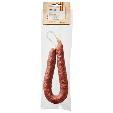 Varkensvlees, 2,8% paprika, zout, brandewijn, knoflook, varkensdarm. Voor 100g eindproduct is 130g varkensvlees gebruikt.