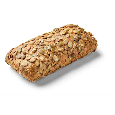 Ingrediënten :49% VOLKORENTARWEMEEL, water, 5,3% pompoenpitten, 2,8% geroosterd lijnzaad, 2,8% geroosterde zonnebloempitten, 2,8% geroosterde pompoenpitten, 2,8% geroosterde SESAMZAAD, 2,8% geroosterde volkoren ROGGESCHROOT, TARWEGLUTEN, 1,1% geroosterde durum TARWEGRIESMEEL, zout, bakkersgist, rijstmeel, 0,1% TARWEMOUTMEEL, 0,1% voorverstijfseld VOLKORENTARWEMEEL, aardappelzetmeel, meelverbeteraar: E300, TARWEKIEMEN, TARWEBLOEM.