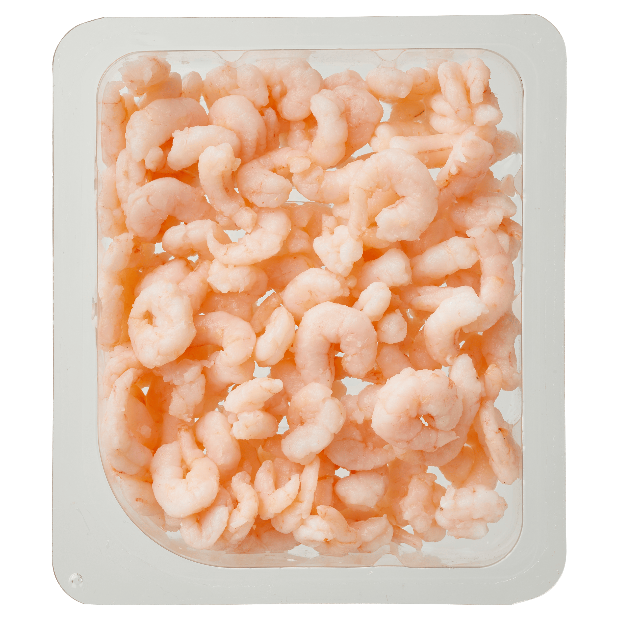 Gekookte, gepelde roze garnalen, ontdooid.