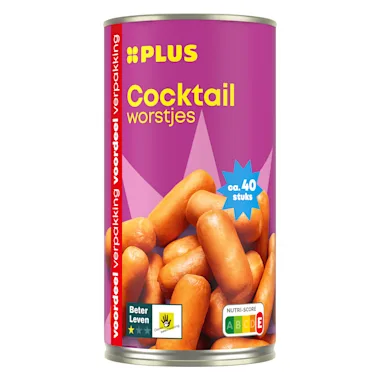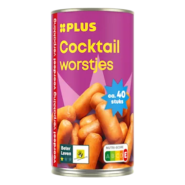 BETER LEVEN KEURMERK Het varkensvlees in deze Plus Cocktailworstjes is op diervriendelijkere wijze geproduceerd en daarom heeft de Dierenbescherming