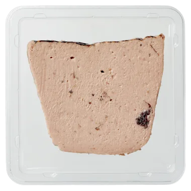 Ingrediënten :25% varkenslever*, varkensvet*, MELK**, 12% varkensvlees*, 12% jam (suiker, 26% cranberry's, 22% veenbessen), varkensbindweefsel*, SCHARRELKIPPENEI, rijstbloem, nitrietpekelzout (zout, conserveermiddel: E250), voedingszuur: E262/E325, suiker, gebakken ui, honing, erwtenzetmeel, varkenseiwit, specerijen, MOSTERDZAAD, majoraan, antioxidant: E300/E330, natuurlijk aroma, dextrose.