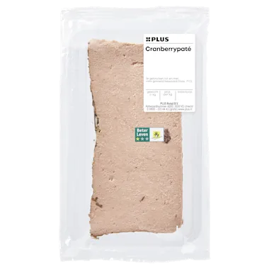 Ingrediënten :25% varkenslever*, varkensvet*, MELK**, 12% varkensvlees*, 12% jam (suiker, 26% cranberry's, 22% veenbessen), varkensbindweefsel*, SCHARRELKIPPENEI, rijstbloem, nitrietpekelzout (zout, conserveermiddel: E250), voedingszuur: E262/E325, suiker, gebakken ui, honing, erwtenzetmeel, varkenseiwit, specerijen, MOSTERDZAAD, majoraan, antioxidant: E300/E330, natuurlijk aroma, dextrose.