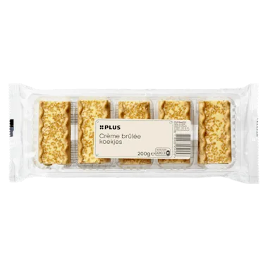 Krokant koekje met 44% vulling met crème-brûléesmaak en 7% suikerdecoratie