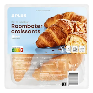 Oven (200°C): Verwarm de oven voor. Leg de croissants op een rooster in het midden van de oven. Bak gedurende 4-6 minuten af.
