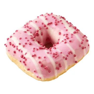 Gefrituurde deegwaren met 15% coating met aardbeiensmaak en 8% suikerdecoratie, ontdooid
