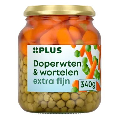 Ingrediënten :groenten in wisselende verhouding (doperwten, wortelen), water.