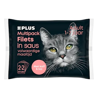 Volledig diervoeder voor volwassen katten, minifilet in saus met kalf of kip