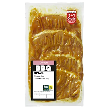 Barbecue: Leg de lapjes ca. 5 à 6 minuten op de barbecue. Keer regelmatig om.