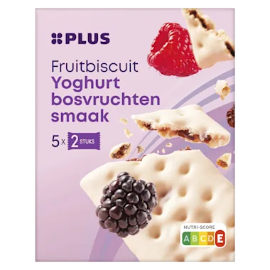 Ingrediënten :Ingrediënten: TARWEBLOEM, rozijnen, suiker, krenten, vulstof (E965), palmpitvet, HAVERMEEL, 2% magere yoghurtpoeder (MELK), palmolie, weipoeder van microbieel stremsel (MELK), raapzaadolie, glucosestroop, glucose-fructosestroop, bevochtigingsmiddel (E422), fructo-oligosacchariden, rijstebloem, TARWEZETMEEL, kokosolie, TARWEZEMELEN, 0,3% bramenpuree, dextrose, magere MELKPOEDER, zout, emulgator (E322, E322 (SOJA)), voedingszuur (E330), 0,05% rode bessenpuree, 0,05% frambozenpuree, natuurlijk aroma, rijsmiddel (E500, E450, E503), frambozensapconcentraat, SCHARRELKIPPENEI, geleermiddel (E440), rode bessensapconcentraat, zuurteregelaar (E331, E333).