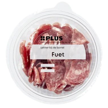 Voor 100 gram fuet is 172 gram varkensvlees gebruikt.