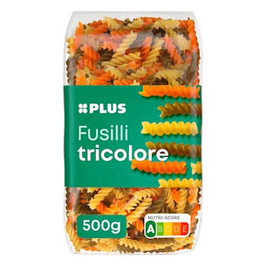 Ingrediënten :98,5% DURUMTARWEGRIESMEEL, 0,9% tomatenpoeder, 0,6% spinaziepoeder.